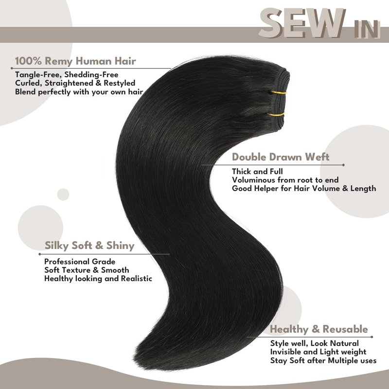 - 【100% Remy Human Hair &Double Drawn】Jerriess Sew in Hair Extensions Real Human Hair made of 100% Premium Remy human hair, Silk soft and Shiny, can blend naturally with your own natural hair. Double Drawn Weft hair extensions human hair is organized in equal lengths developing a really smooth and refined look, which is to be very same volume from origins to ends. Real Hair Extensions weft can be reused for multiple salon applications with proper aftercare and maintenance.