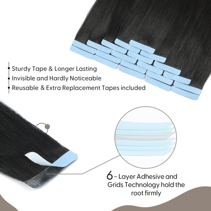 - 【Strong Adhesive &Reusable】We offer Tape in Hair Extensions human hair at an unbeatable price. And Tape Tabs with Strong Adhesive is designed to last for 4-6 weeks, even with regular washing and styling. Additionally, the Tape Tabs are Reusable, making them a cost-effective and durable choice for your Hair Extension needs.