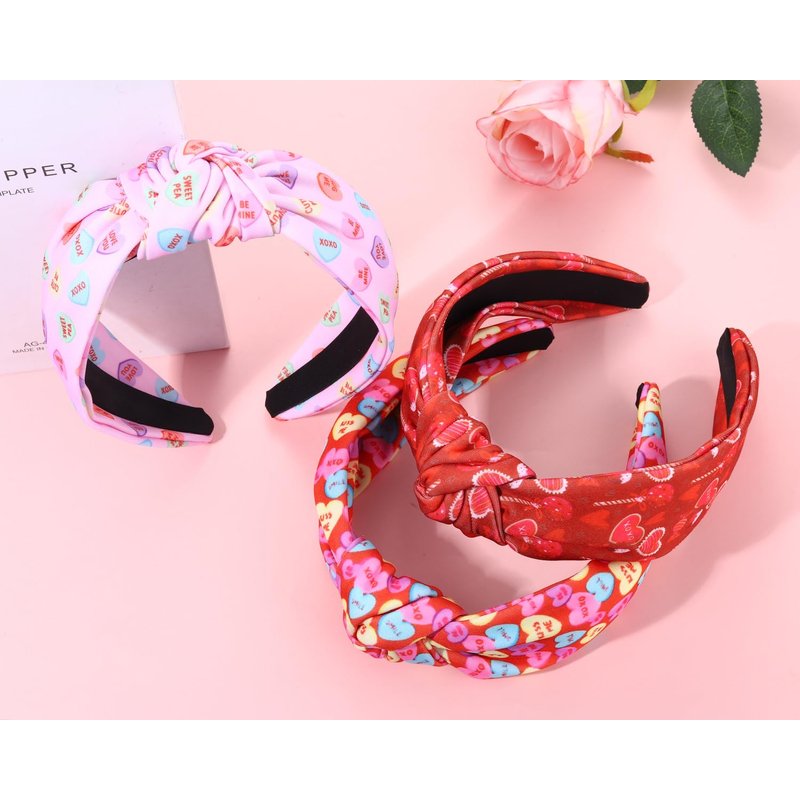 - Heart Headbands:With tenderhearted affection wafting through the air,show your burning love with this Valentine's Day heart knotted headband!Pink heart headband perfect for adding a festive touch to your Valentines outfits.From festival to first dates,no matter if you're wearing a tee shirt,sweater,dress,or tank,the Printed Love Heart XOXO headband will take your outfit to the next level.By wearing these Valentines headband,you can express your love for Valentine's day!