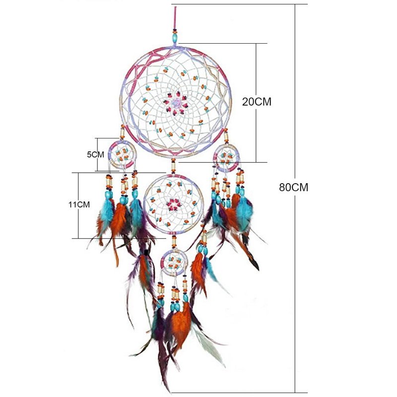 Jescrich Traditional Handicrafts Dream Catcher Hanging Feathers Ornament with 5 Rings(31'' Long)
