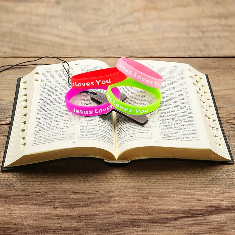 - 【Christian bracelets suitable occasion】Jesus Loves You Rubber Bracelets can be applied as a gift to church members and visitors during Christmas, Easter, Advent and baptism celebrations, and can also be applied as a gift for outreach and missionary travel; It provides convenience for Sunday school and Bible study.
