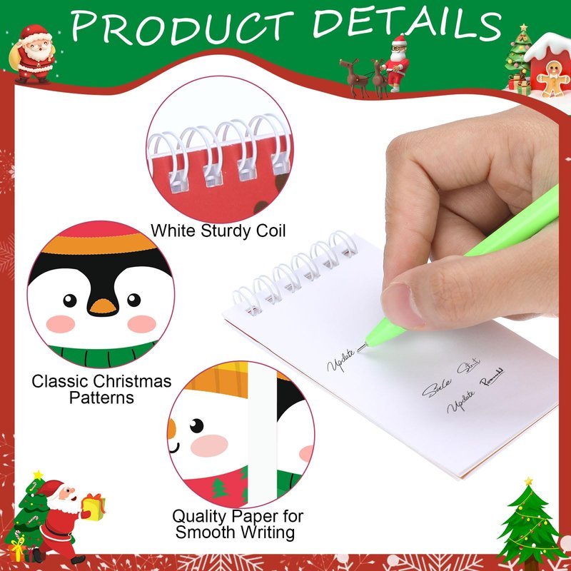 - Christmas Stationery Set: you will receive 24 pieces Christmas mini notepads and 24 pieces Christmas pens, both designed in 8 different styles, 3 pieces for each style; Such a complete stationery set is ideal to satisfy your various Christmas themed party favors