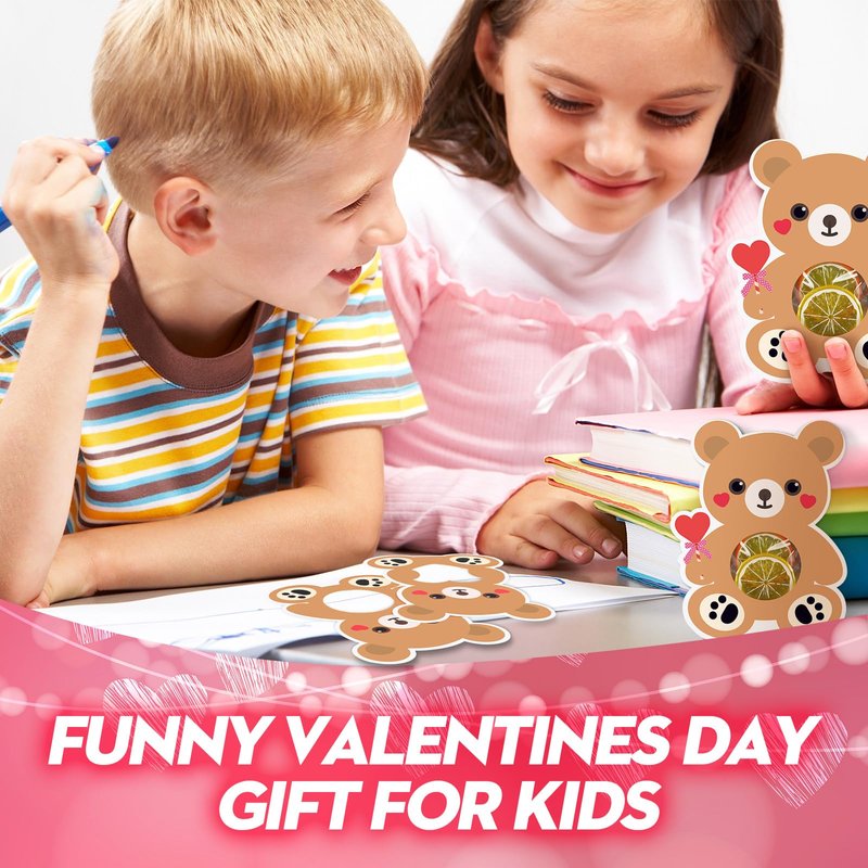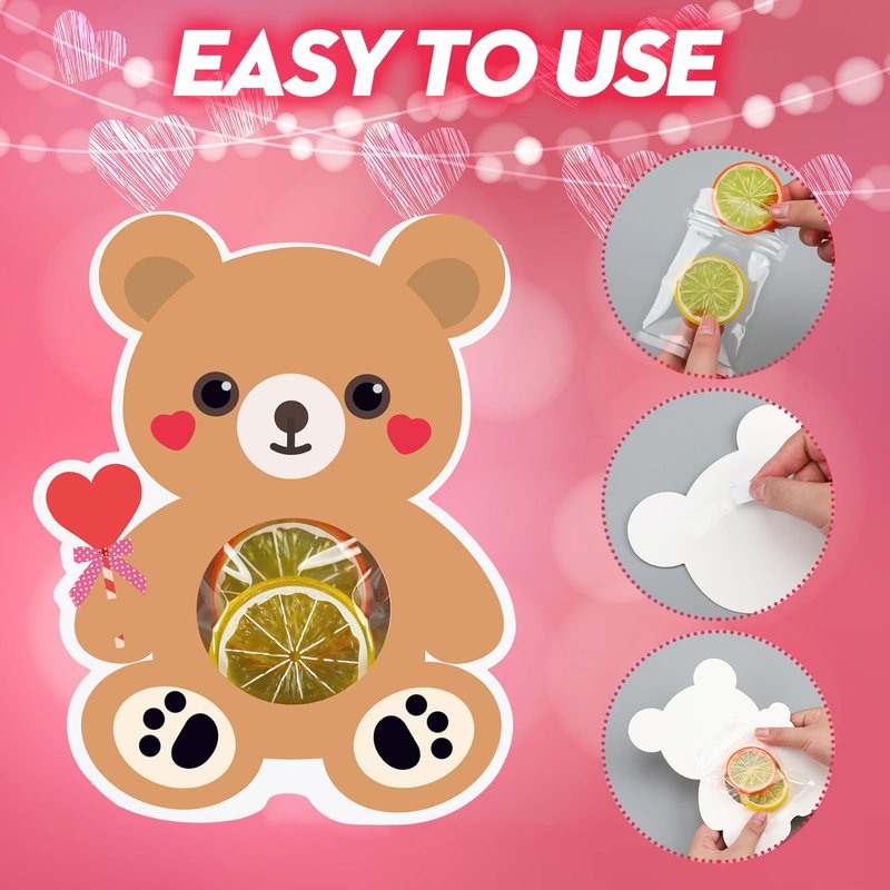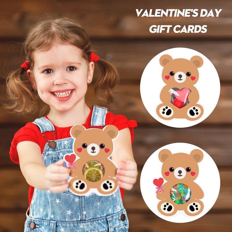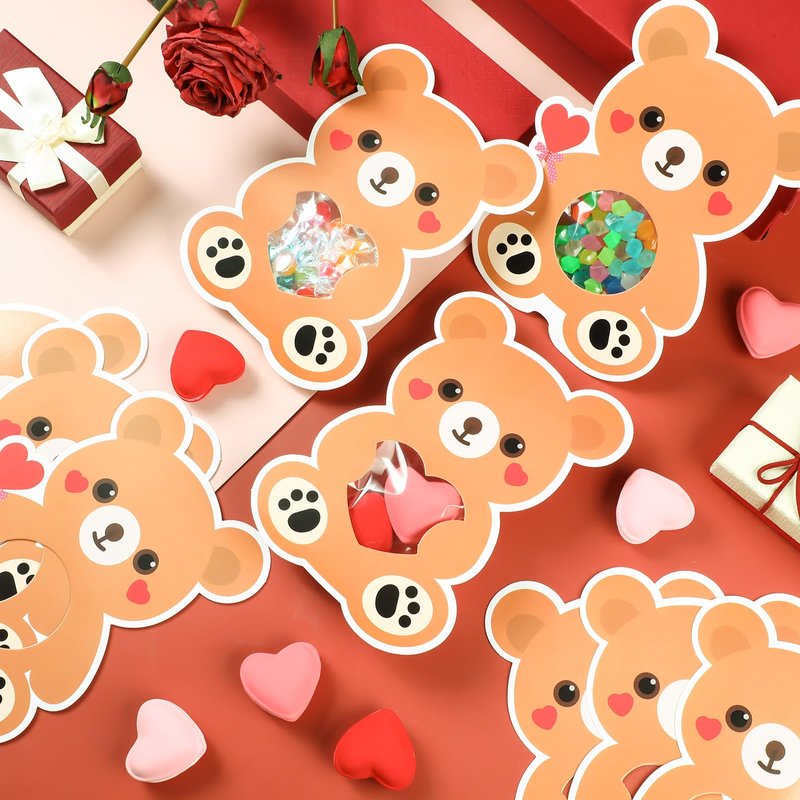 - Attractive Design: the Valentine's day card is designed with bear shape, adorable and eye catching, with the hollow shape in the middle, you just need to put your favorite candies or treats into the transparent bags, then use the double sided adhesive to attach the bags on the back of the cards