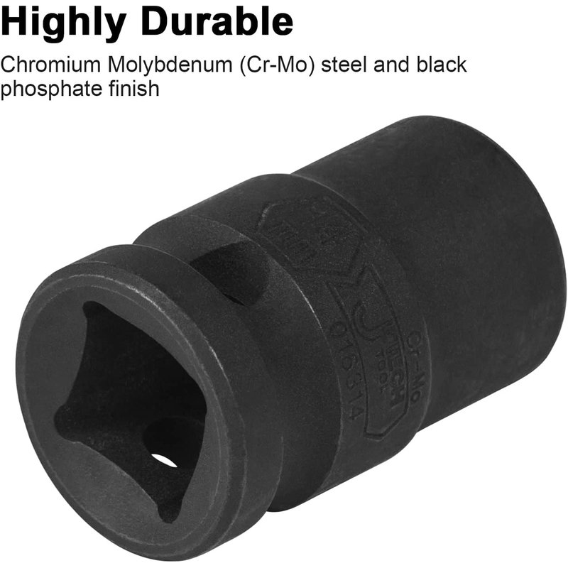 Founded in the 2000s, Jetech boasts a comprehensive range of tools with a strong focus on professional industrial-grade tools. We take pride in serving mechanics and users from over 60 countries and 5 continents. Jetech 1/2" Dr 24mm deep impact socket is designed for professional use with impact tools. Durable Cr-Mo material together with cold forging and heat treatment ensures high quality, strength and working ranges. Its 6-point design provides a more exact fit. Easily recognize the size with clear markings on the tool itself. Radius corner design protects the fastener and socket, prolonging the lifespan of both this tool and the fastener.