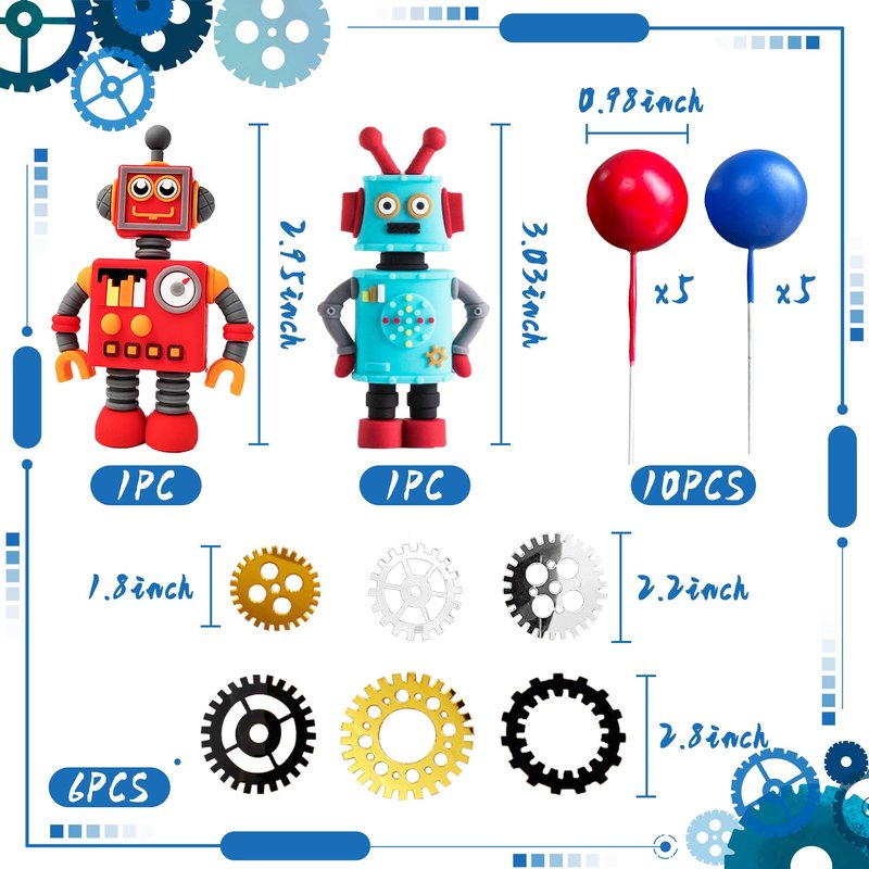 - Package Included: 10 x balls, 6 x gears. 2 x robot cake topper.