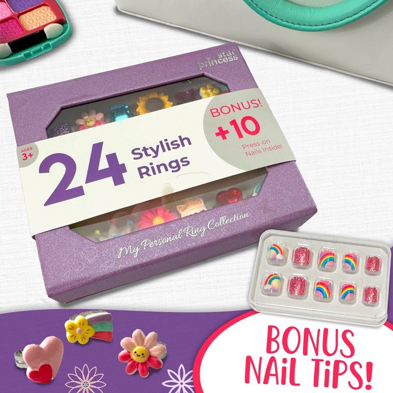 - Set of 24 Adjustable Jewel Rings for Kids - Perfect for dress-up and pretend play, these unique rings come in a beautiful purple gift box. Each ring is different, ensuring no duplicates, making it an ideal gift for little girls.