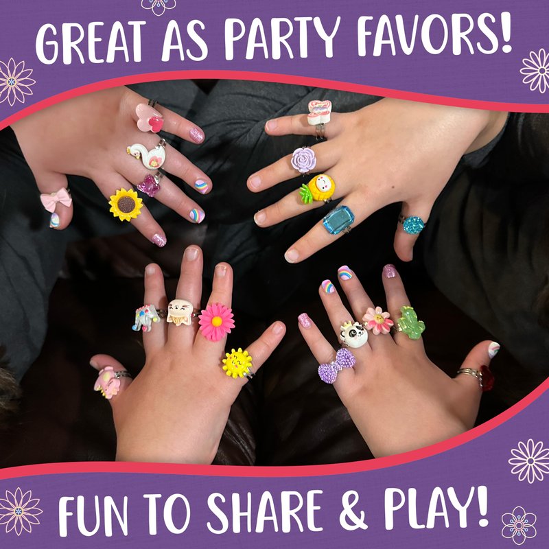 - Variety of Designs: Includes an assortment of colorful rings with different gemstone-inspired shapes and patterns.