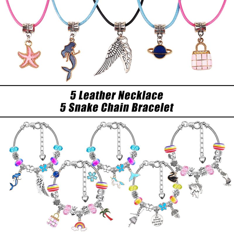 - [Various Style]: Charm bracelet making kit for girls is suitable for bracelets, earrings, necklace, anklet and keychains DIY craft. Change bracelet charms beads and color combinations to create one-of-a-kind Charms bracelets.