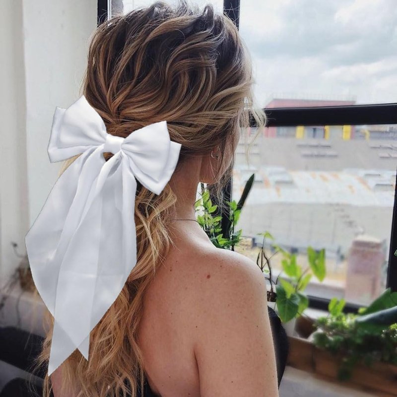 - Big satin Ribbon Hairpin size is 12.2*6.7in(length x width).Big and Wide Tailed Hair Bow ,lt gives a much voluminous looks at the back when it is worn.