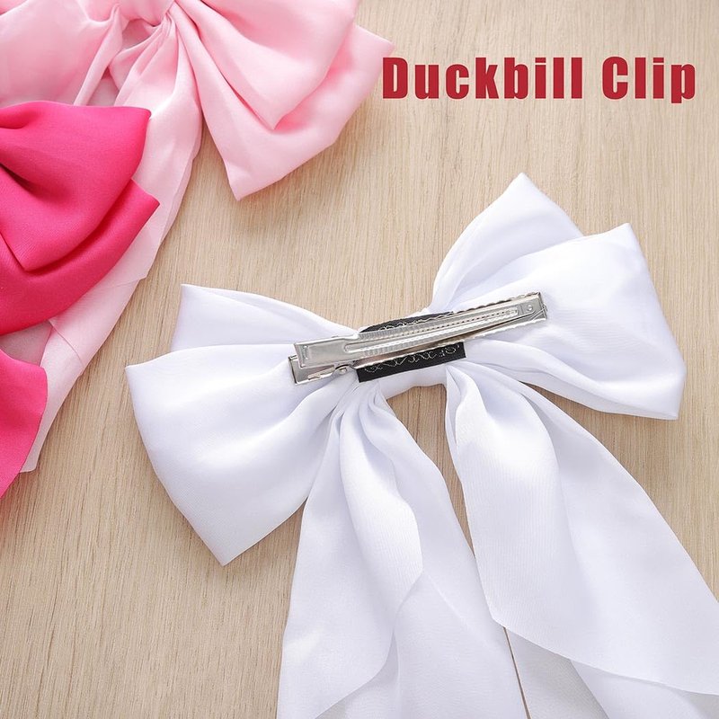 Large Bow Hair Clips: Hair clips are made of metal duckbill clips and high quality satin material, which is soft to touch. Package Quantity: When you purchase an order, you will get three different colors of hair clips, which are pink, white and hot-pink. Match them according to your outfit and release your creativity! Satin duckbill clip hair clips are suitable for weddings, dates, parties, festivals and daily use. Great for both your curly and straight hair.