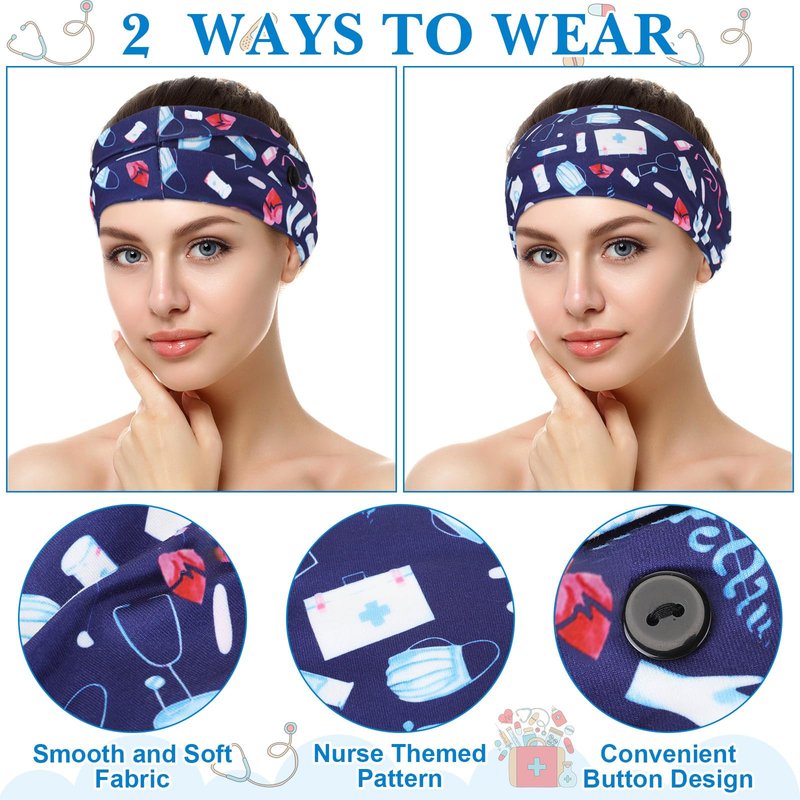 - Button Designed: there is a button on both sides of the nursing headbands, applied to hang your mask, which can relieve the earache problems of wearing masks for a long time, suitable for nurses, dentists and other relative workers