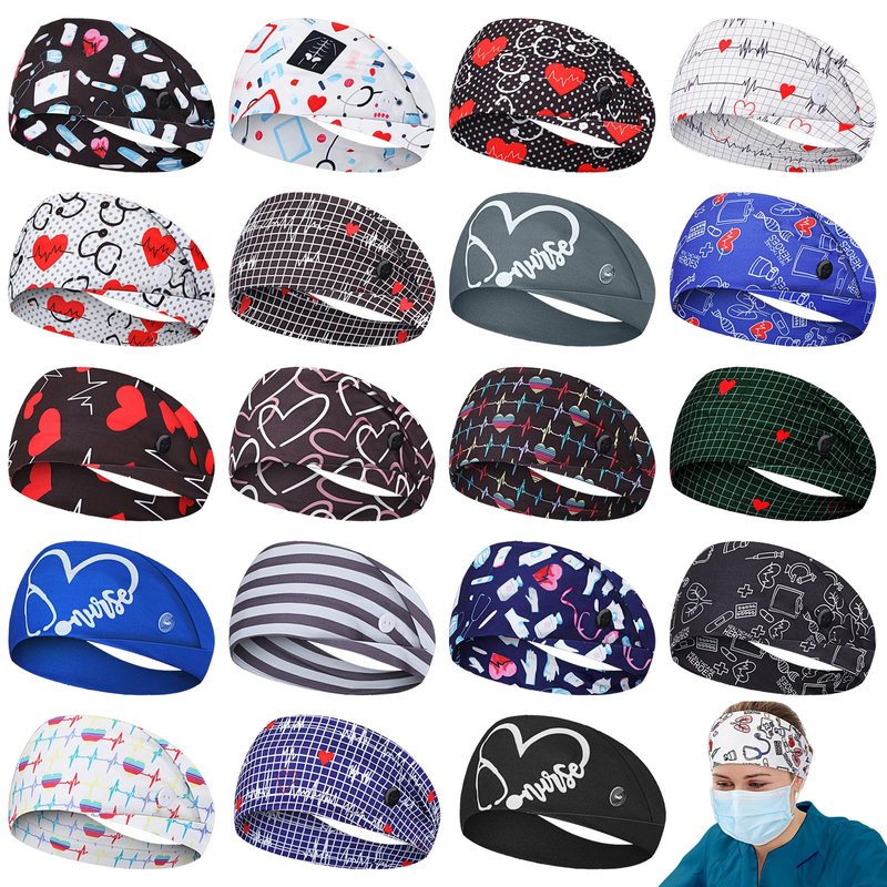 Jexine 20 Pcs Nursing Headbands with Buttons Wide Elastic Stretch Nurse Hair Bands Non Slip Face Covering Ear Protection for Nurse Doctors Women Spa Yoga Sports Workout Head Wraps Accessories