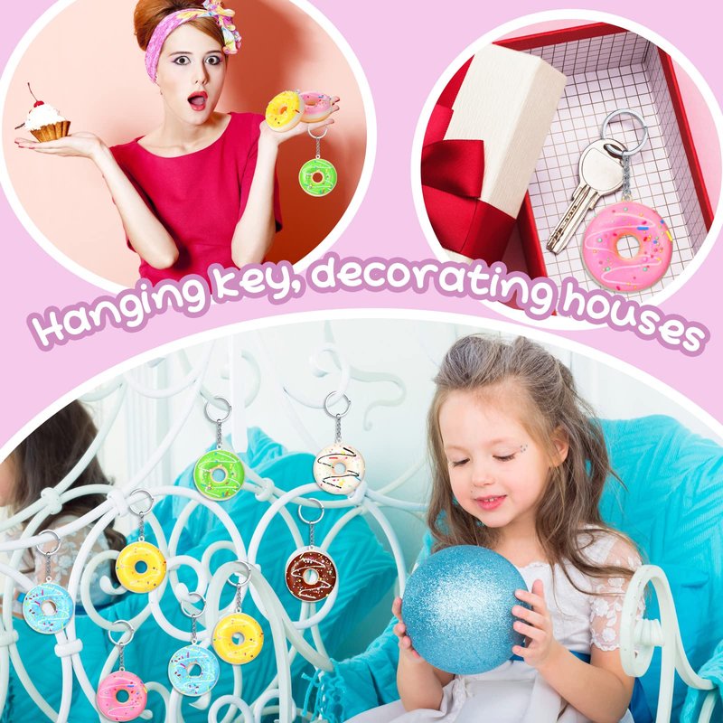 - Package Includes: 36 pieces of donuts keychain are in the package, 6 colors including white, yellow, pink, chocolate, green, blue. Each donut comes with a key ring, which allows you to hang something on