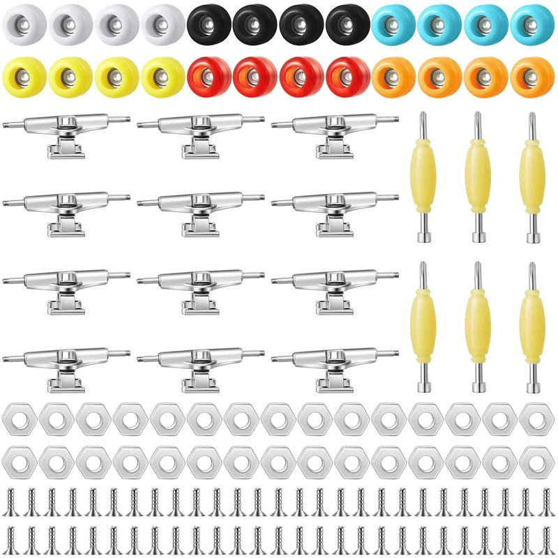 - Quality Materials: each wheel has built in metal bearings, smooth use enables the fingerboard wheels to rotate quickly and run steadily; The rest of the skateboard accessories are made of quality zinc alloy materials, safe and sturdy