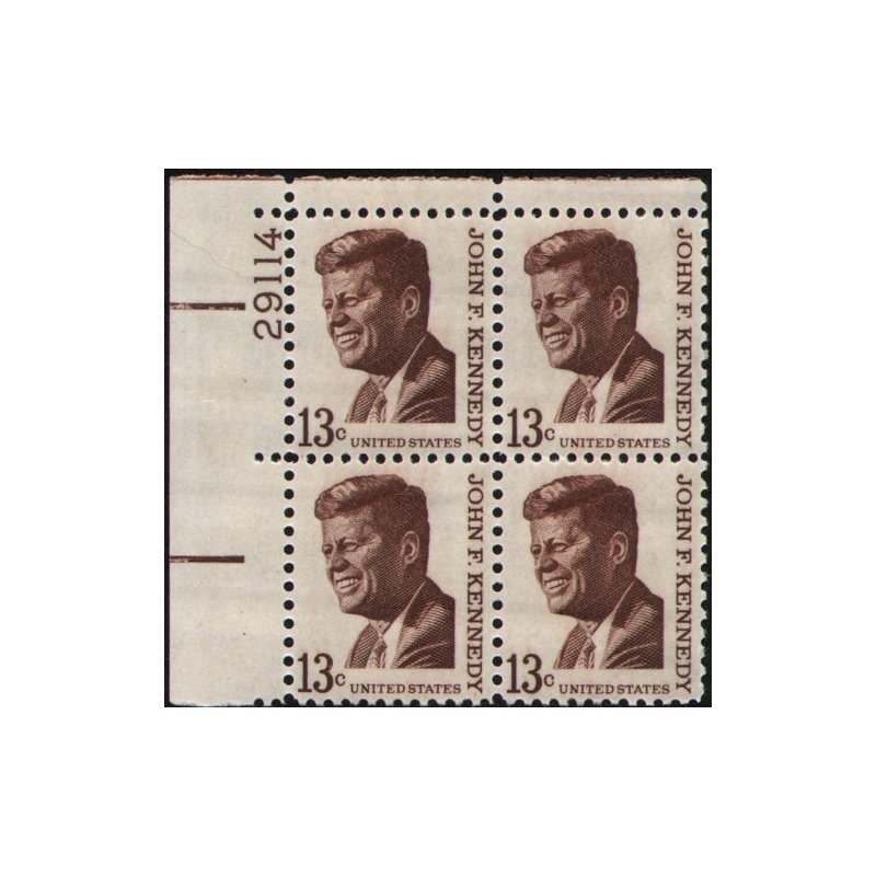 JFK ~ JOHN F. KENNEDY #1287 Plate Block of 4 x 13¢ US Postage Stamps