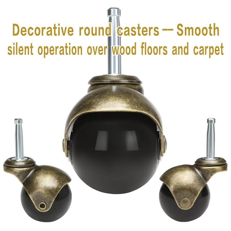 - SWIVEL BALL BEARING CASTORS -- Brass stem caster wheels designed with quality steel ball bearings ensure the 360 rotation casters low frictional resistance, smooth and quiet movement. Round shape makes it the ideal furniture casters for carpet.