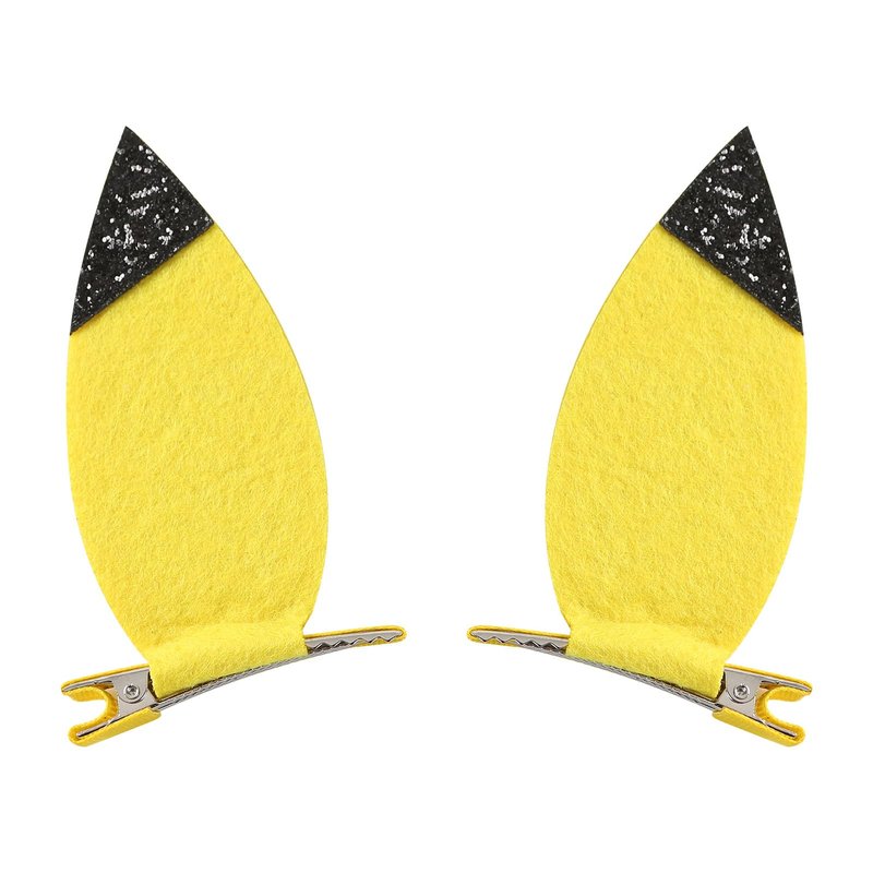 - Material: The yellow ears made of felt and black glitter glued on, attached to a matching colored felt covered alligator clip. Cute and sturdy.