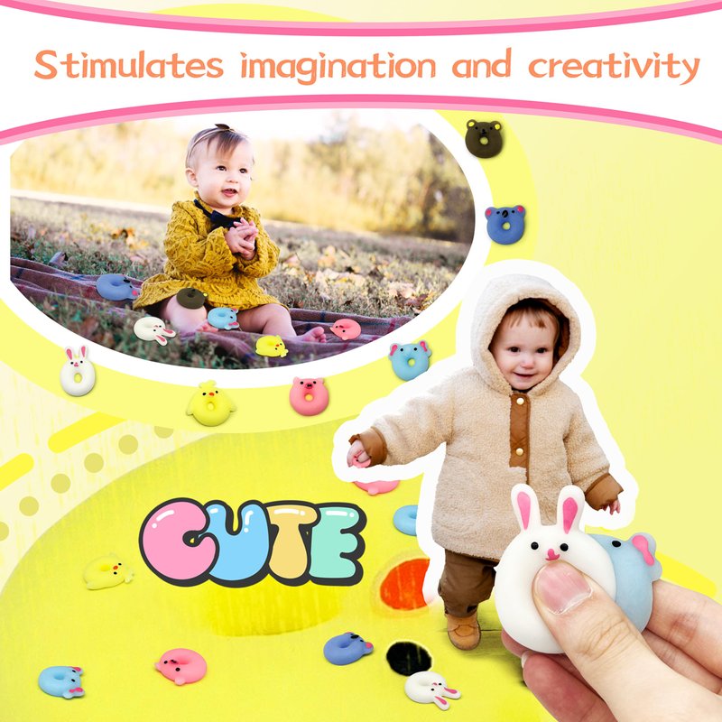 These squishy toys are made with high-quality materials, making them durable and easy to clean. You can simply wash them with soap and water and they will be good as new. Variety of styles including chick, elephant, Bunny, Bear and more!