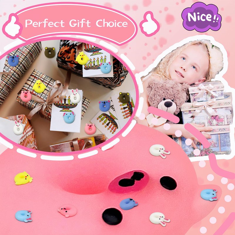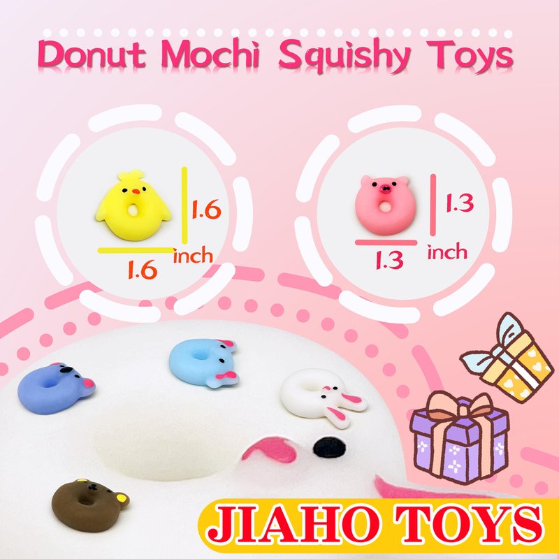 - 6 Pack Donut Mochi Squishy Toys: Cute and soft mini donut toys set for kids, teens, randomly 6 individually wrapped donut mochi toys. Our donut squishy toys add a variety of animal features design to make these donut mochi toys more novelty and fun, they are ideal for kids party favors.