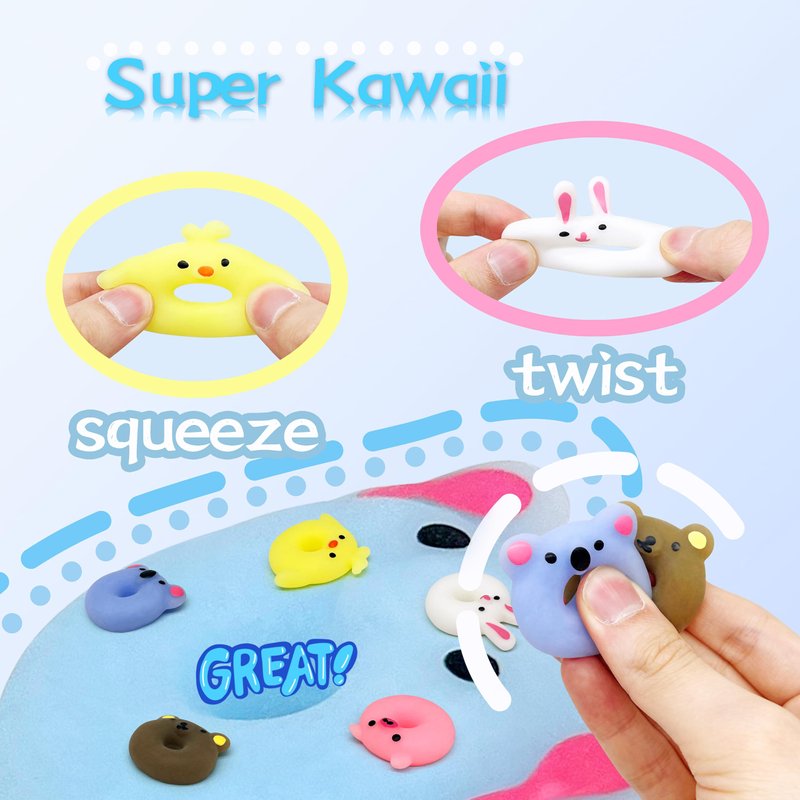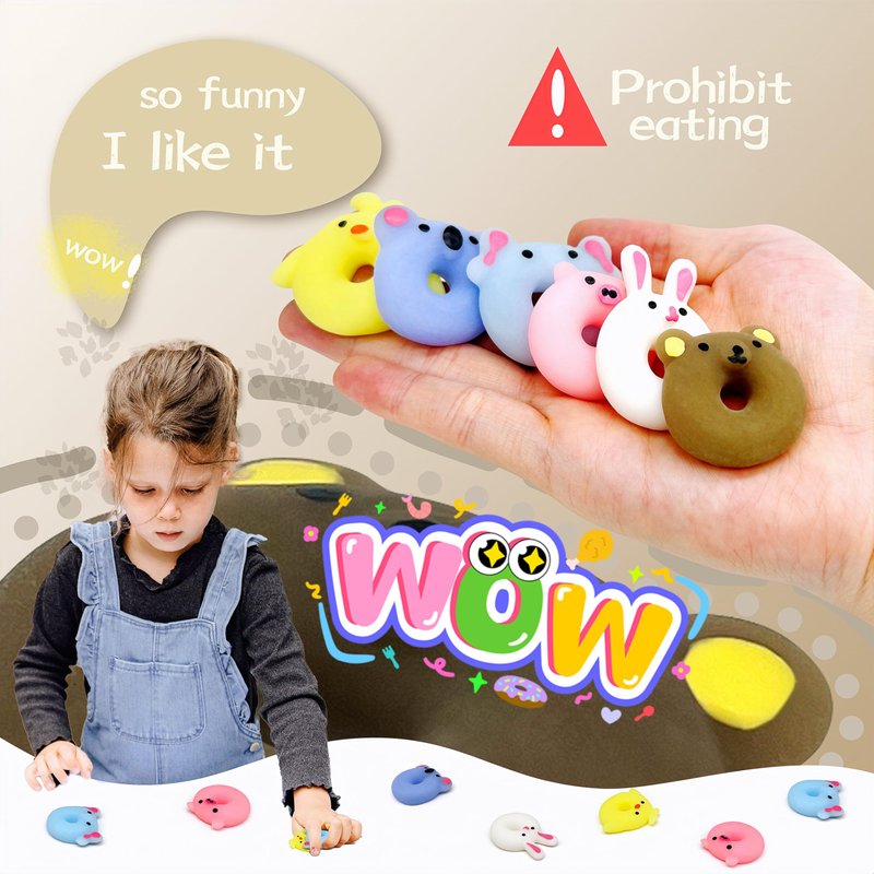 - Sensory Donut Stress Relief Mochi Toys: Great donut mochi toy for kids and adults. Our donut mochi squishy toys can be used as sensory or educational toys, allowing children to play and also learn about different animal features and different colors. And these mini donut toys provide a fun way for adults and kids to relieve anxiety.