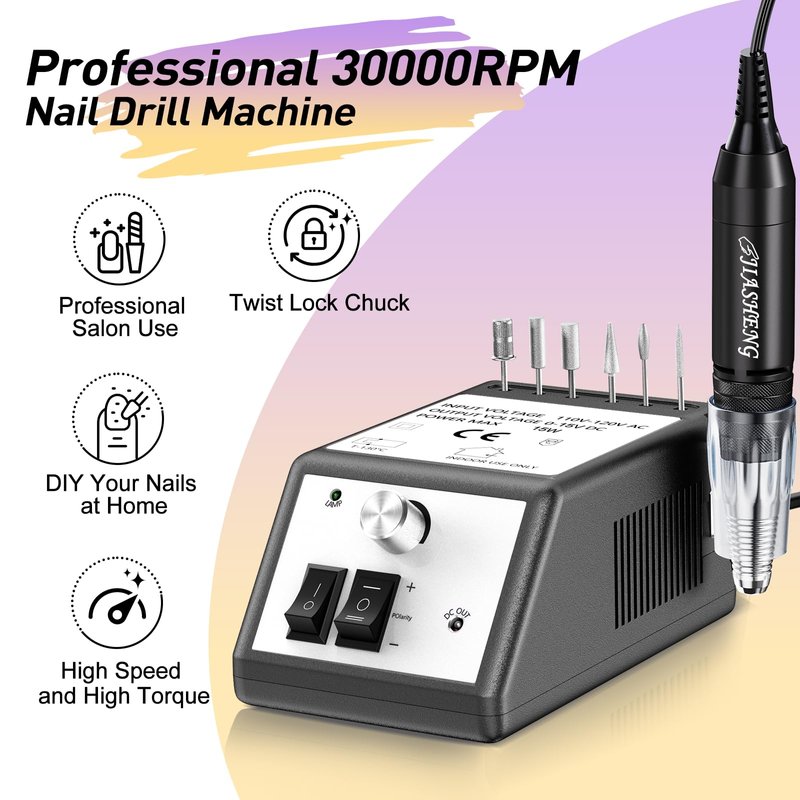 - Powerful Nail Drill: Jiasheng Nail Drill is powerful, speed up to 30000rpm, it emits less noise and heat than other drill, and the hand piece is small enough to fit in your hand, you won’t feel hand fatigue during your operation for polishing acrylic nails