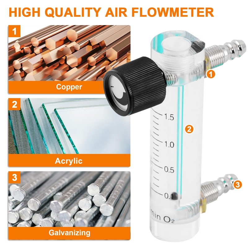 JIAWANSHUN Oxygen Flow Meter 0.1-1.5LPM Gas Flow Regulator Gas Flowmeter with Copper Connector for Oxygen Air