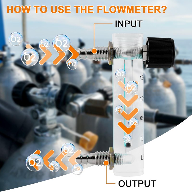 - Tips:When using the flowmeter, the output pressure of the gas cylinder should be adjusted to around 0.1-0.2Mpa. If the float keeps floating to the top, it means that the actual flow rate has exceeded the range of the flowmeter