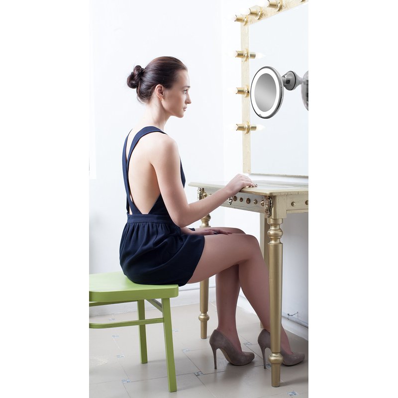 JiBen 10X Magnification LED Mirror, Round, Chrome Accents, 360 Swivel Arm Guaranteed