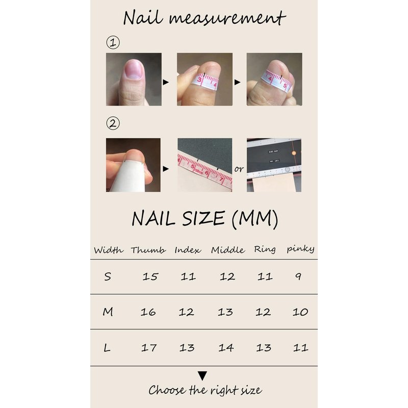 - 【Different Sizes】Please measure your nail width carefully and choose the best fake nail for you according to the size chart (please refer to the product picture).