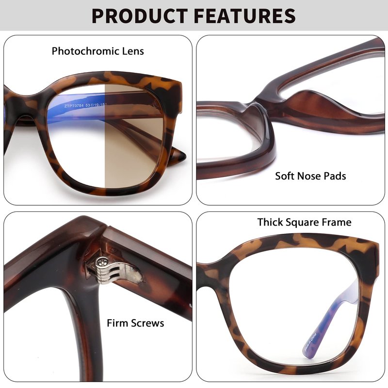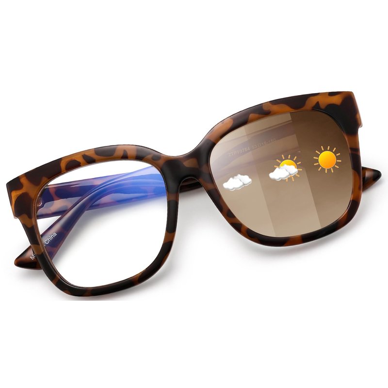 - Photochromic Design - The magical photochromic lenses are based on the intensity of sunlight and ultraviolet lights. Clear blue light lenses change into brown or grey.