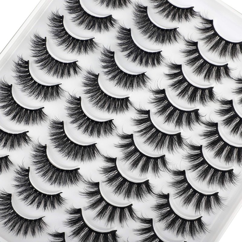 JIMIRE 20 Pairs False Eyelashes 2 Styles Mixed Fluffy Eyelashes Natural Volume Wispy Faux Mink Lashes Pack