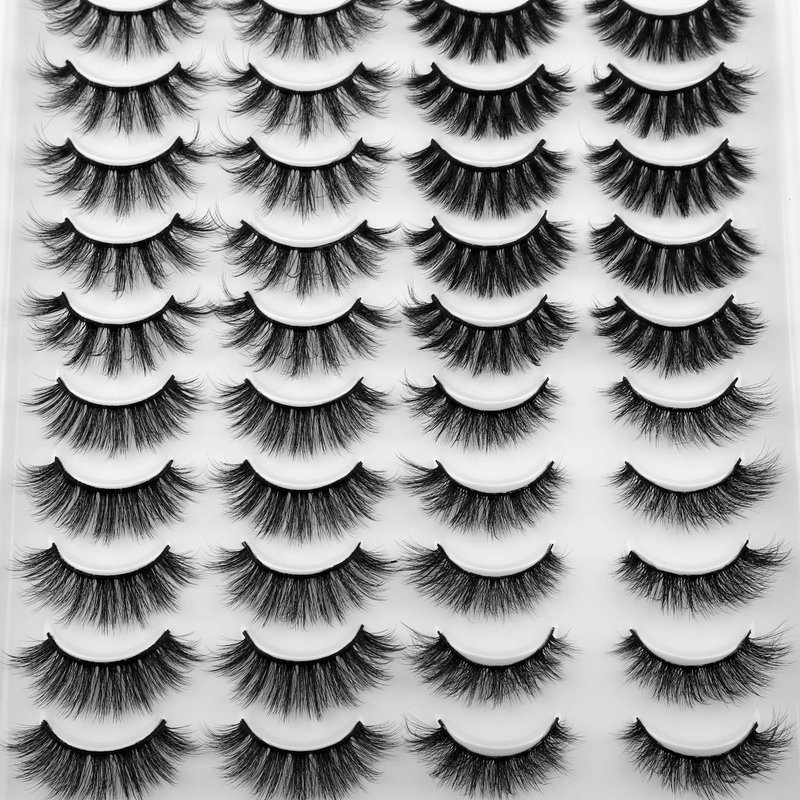 JIMIRE 20 Pairs False Eyelashes 4 Styles Mink Eyelashes Fluffy Pack 3D Volume Faux Mink Cat Eye Lashes Pack