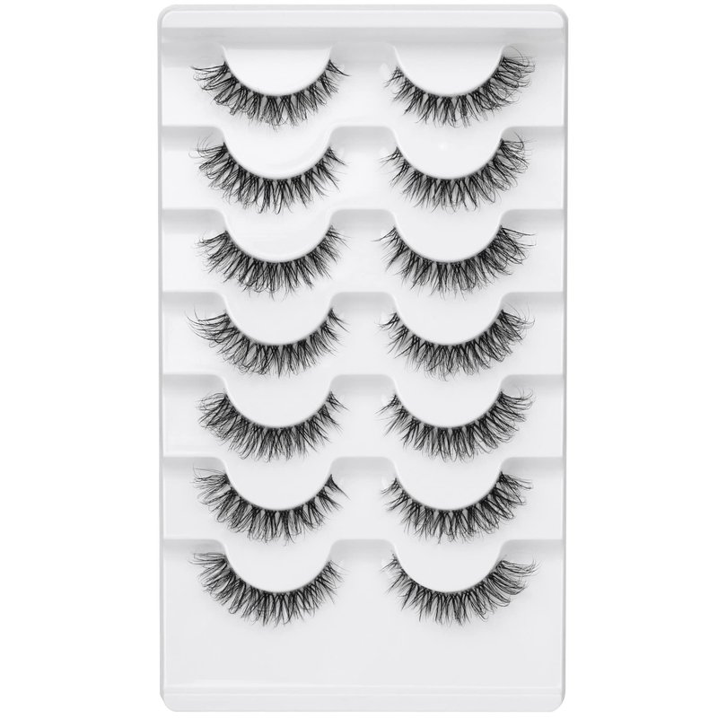 JIMIRE Demi-wispies Faux Mink Eyelashes with Clear Band Russian Strip Lashes Fluffy Natural Look Wispy Light 13MM Short False Eyelashes Invisible Small 3D Fake Lashs Pack 7 Pairs