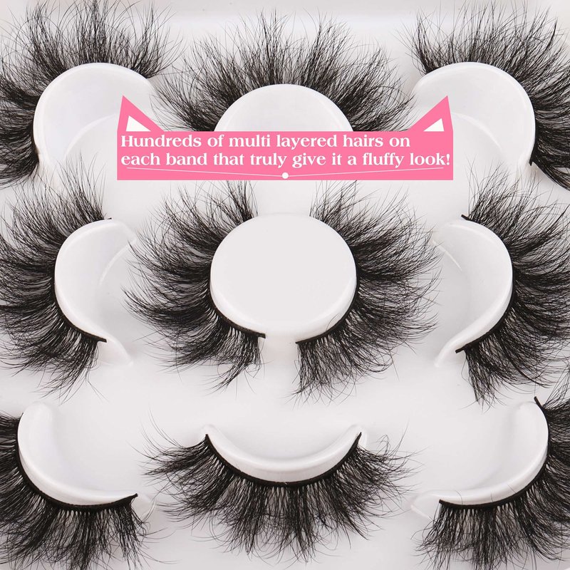 JIMIRE Flare Mink Lashes Fluffy Wispy False Lashes Pack Fluttery 10D Multi-dimensional Volume False Eyelashes 5 Pairs