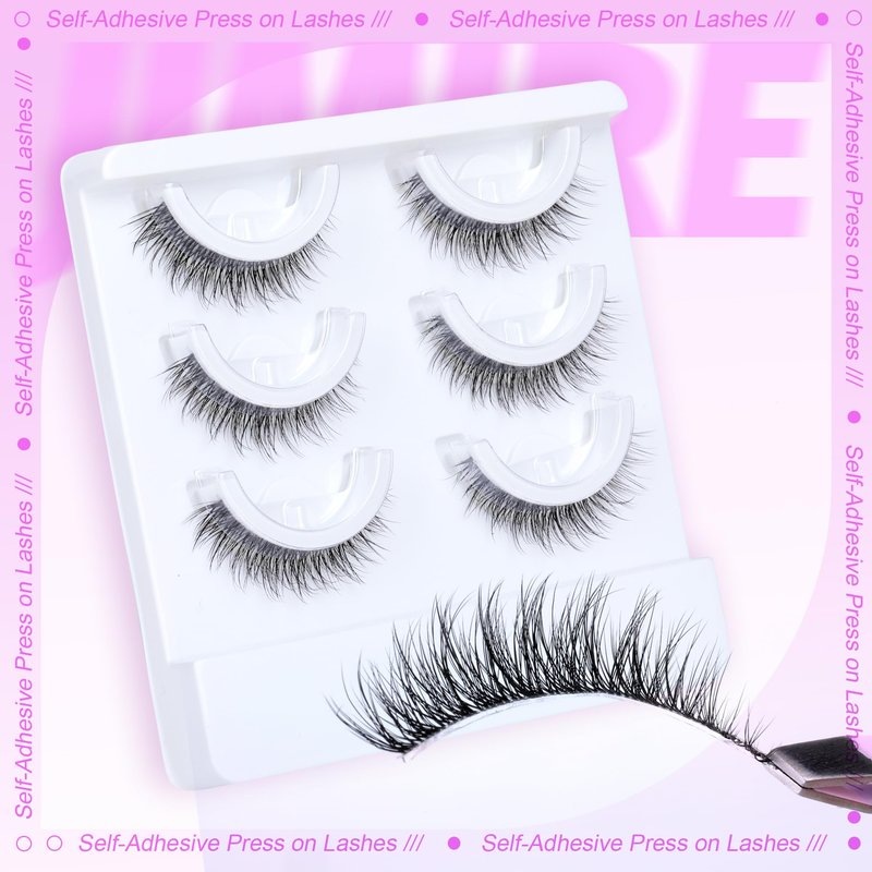 - 🌷No Glue Needed Press on Lashes - 13mm natural eyelashes wispy with a adhesive strip so you don’t need buy extra lash glue to wear this self-adhesive eyelashes. We prepare a lash tweezers for you to pick up lashes easier, super quickly to apply!