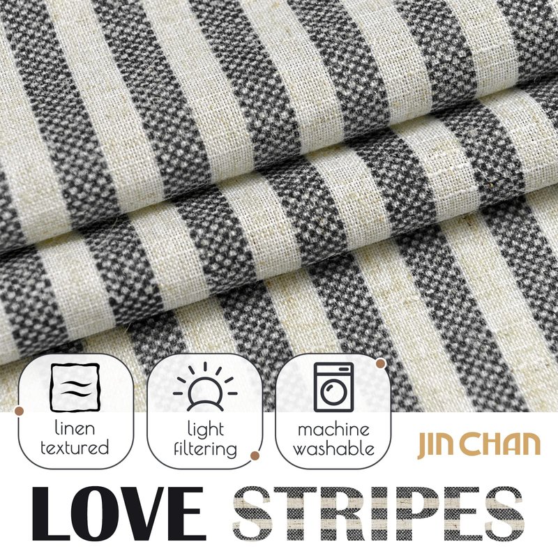 jinchan Kitchen Curtains Striped Tier Curtains Ticking Stripe Linen Curtains Pinstripe Cafe Curtains 36 Inch Length for Living Room Bathroom Farmhouse Curtains Rod Pocket 2 Panels Black on Beige