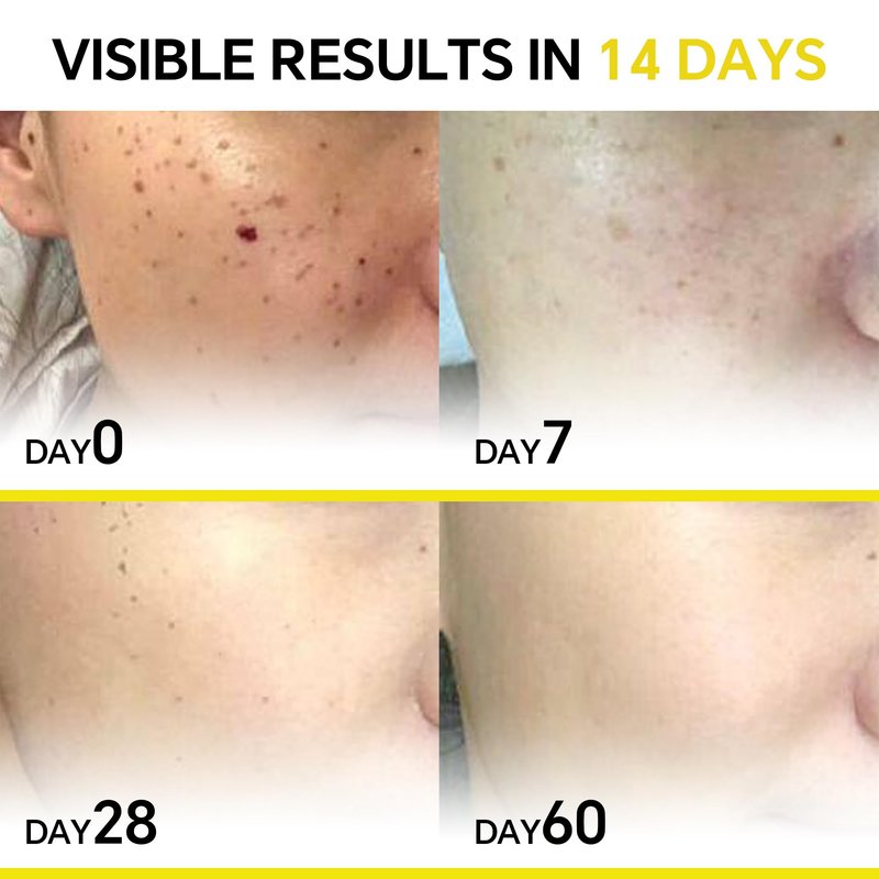 - [Visible Results]: Our dark spot corrector is highly effective and you can get visibly results within 14 days. It can fade stubborn post-blemish marks, dark spots, discoloration & uneven skin tone.