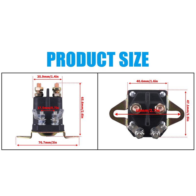 - easy to install,The battery solenoid is made of tough plastic and durable copper,Dust-proof and waterproof jet, dust-proof and liquid-proof, anti-rust and corrosion,withstand high temperature