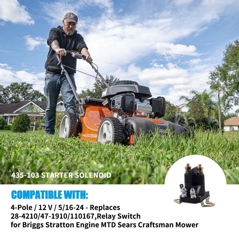 JINGKE 435-103 Starter Solenoid,4-Pole / 12 V / 5/16-24 - Replaces 28-4210/47-1910/110167,Relay Switch for Briggs Stratton Engine MTD Sears Craftsman Mower