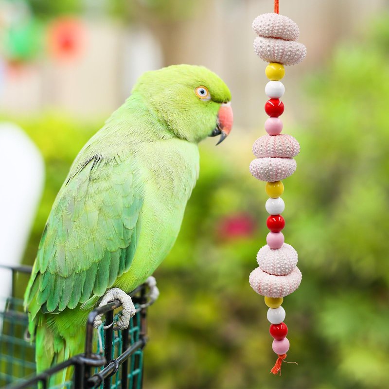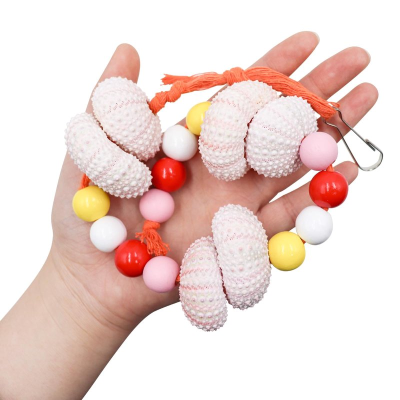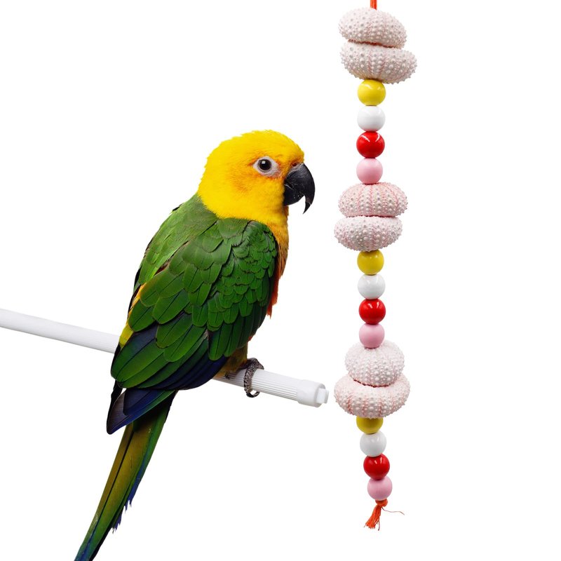 - Natural and Safe Material: Treat your bird to our bird chewing toys, crafted from natural sea urchin shells and colorful wooden beads. Rich in calcium, the sea urchin shell's uneven surface aids in beak grinding, while providing essential mineral supplements, promoting your bird's health and well-being.