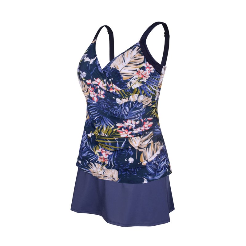 JINXUEER Plus Size Swimsuits Ruched Modest Swimdress Floral Tankini Swimwear Two Piece Skirt Bathing Suit for Women