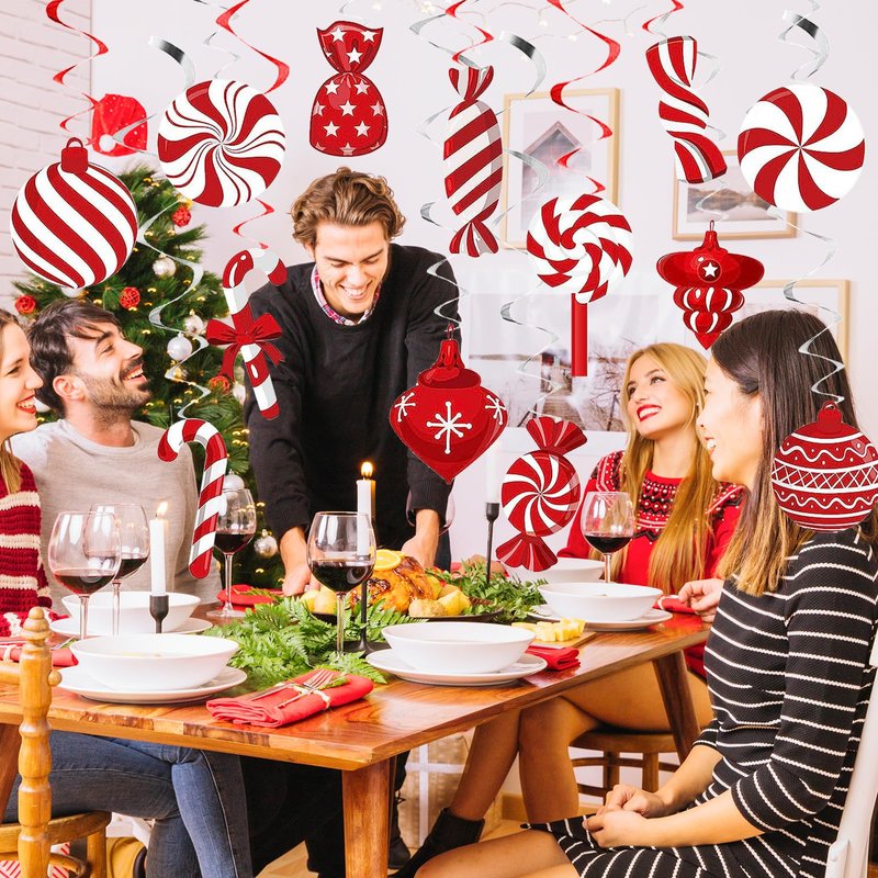 - 【Exquisite Christmas Decorations】These hanging holiday ceiling decorations have sweet candy elements and festive colors, you can use them to decorate your room and parties, bringing a sweet atmosphere to your Christmas party. Hang these swirl decorations from the ceiling, doorway or tree to bring joy to your guests such as wedding parties, baby showers, birthdays, candy games, Christmas, New Year, Thanksgiving and more