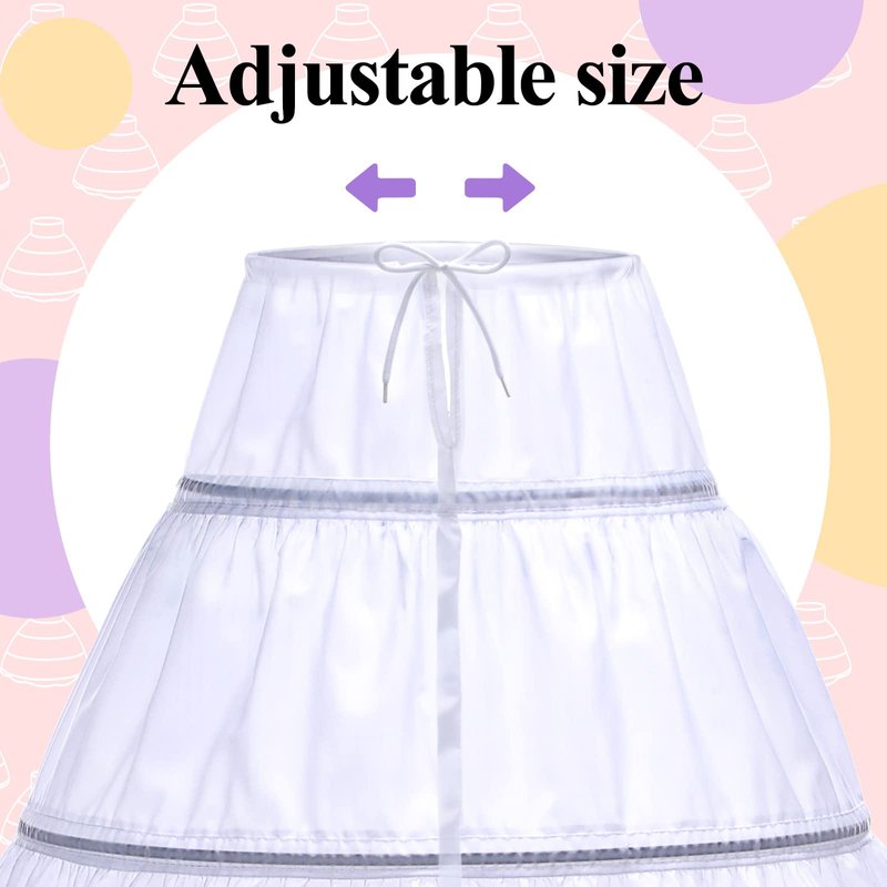 - Soft and adjustable: the dress skirt for girls consists of 3 steel hoops, lace double yarn, and nylon lining, steel hoops are strong and not easily deformed, lace is elegant and soft, nylon lining is breathable and elastic, bringing you a comfortable wearing experience