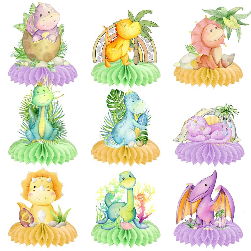 - Package Include: The package includes 9pcs dinosaur party honeycomb centerpieces in 9 different dinosaur styles. Each dino has the perfect size which is printed in watercolor with beautiful colors, making it a great gift for kids/teens