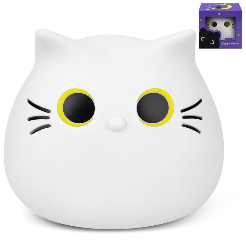 JIZWPOOM Piggy Bank, Cute Cat Piggy Bank Cat Money Saving Box for Kids, Coin Piggy Bank Coin Bank Box Unbreakable Piggy Bank Toy Gifts for Adults Boys Girls Birthday (White, 7 Inch)