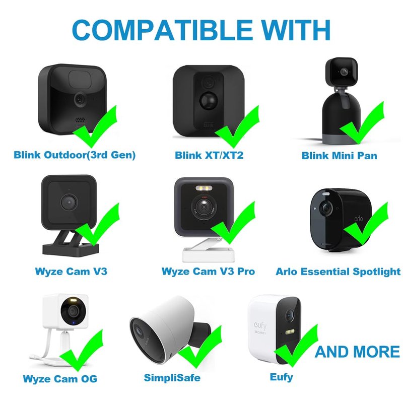 - 【Extensive Compatibility】The power extension cord compatible with Wyze Cam v3/v3 Pro/OG/Outdoor, Arlo Essential, Eufycam 2/2 Pro/2C/2C Pro/E/SoloCam E20/SoloCam E40, SimplySafe Camera, KasaCam, Ring Indoor Cam, YI 1080p Home/YI Pro 2K Home Camera, Kami Camera, Blink Outdoor/Mini/Mini Pan, Amazon Cloud Camera and more. NOTICE: NOT Compatible with Arlo Pro/Pro2/Essential 2K XL(2nd Gen), Wyze Cam v2, Wyze Cam Pan V2/V3, Wyze Lamp Socket and NOT for any other Type C Connector device
