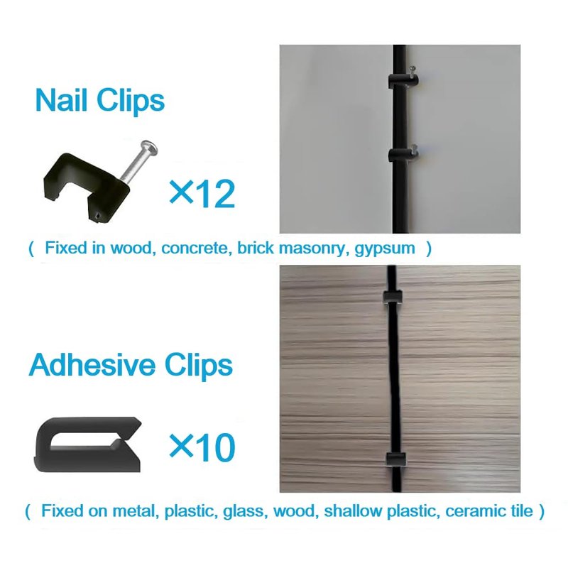 - Extra Adhesive Clips can be used in smooth places that are not suitable for nails