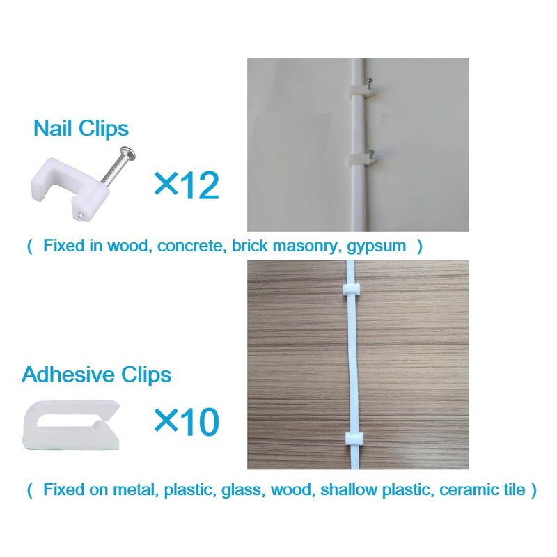 - Extra Adhesive Clips can be used in smooth places that are not suitable for nails