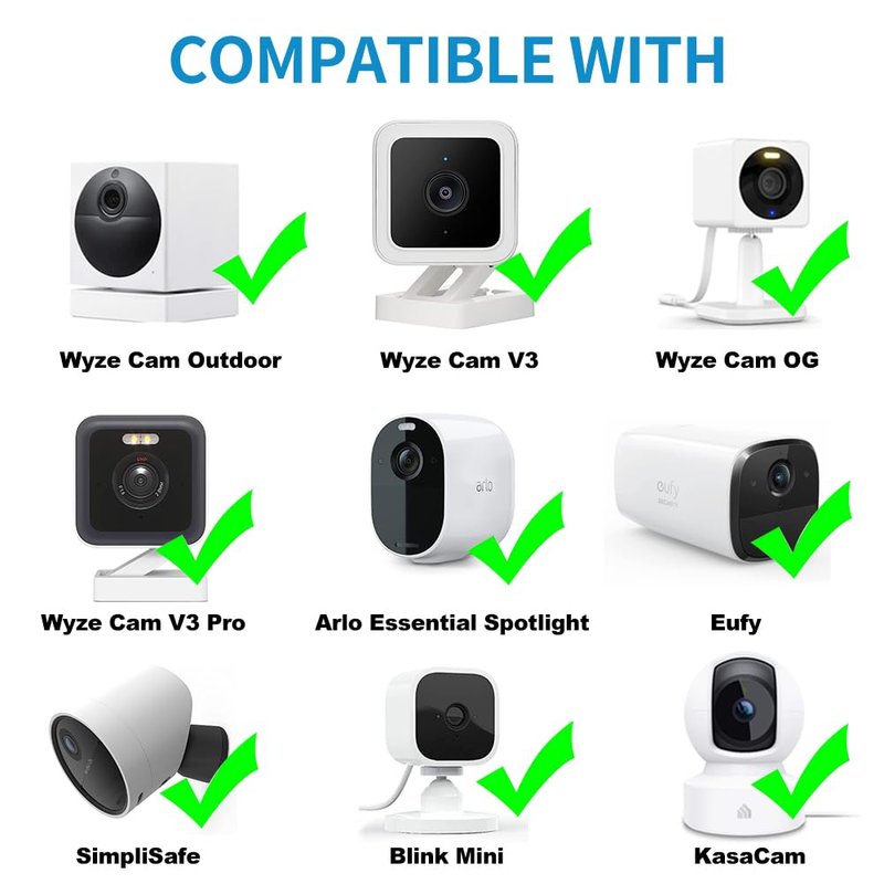 - 【Extensive Compatibility】The power extension cord compatible with Wyze Cam v3/v3 Pro/OG/Outdoor, Arlo Essential, Eufycam 2/2 Pro/2C/2C Pro/E/SoloCam E20/SoloCam E40, SimplySafe Camera, KasaCam, Ring Indoor Cam, YI 1080p Home/YI Pro 2K Home Camera, Kami Camera, Blink Outdoor/Mini/Mini Pan, Amazon Cloud Camera and more. NOTICE: NOT Compatible with Arlo Pro/Pro2/Essential 2K XL(2nd Gen), Wyze Cam v2, Wyze Cam Pan V2/V3, Wyze Lamp Socket and NOT for any other Type C Connector device