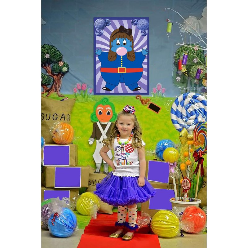 jkhycf Chocolate Factory Party Decorations Pin The Gum on the Violet Pin Game for Kids Candyland Birthday Party Decorations Halloween Cosplay Party Games for Kids